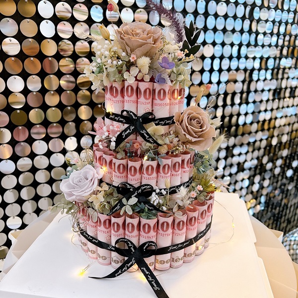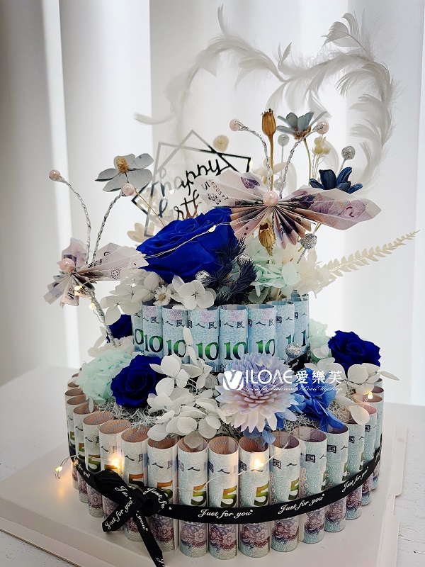 【課程標誌:高端永生花 x 鈔票雙層蛋糕】