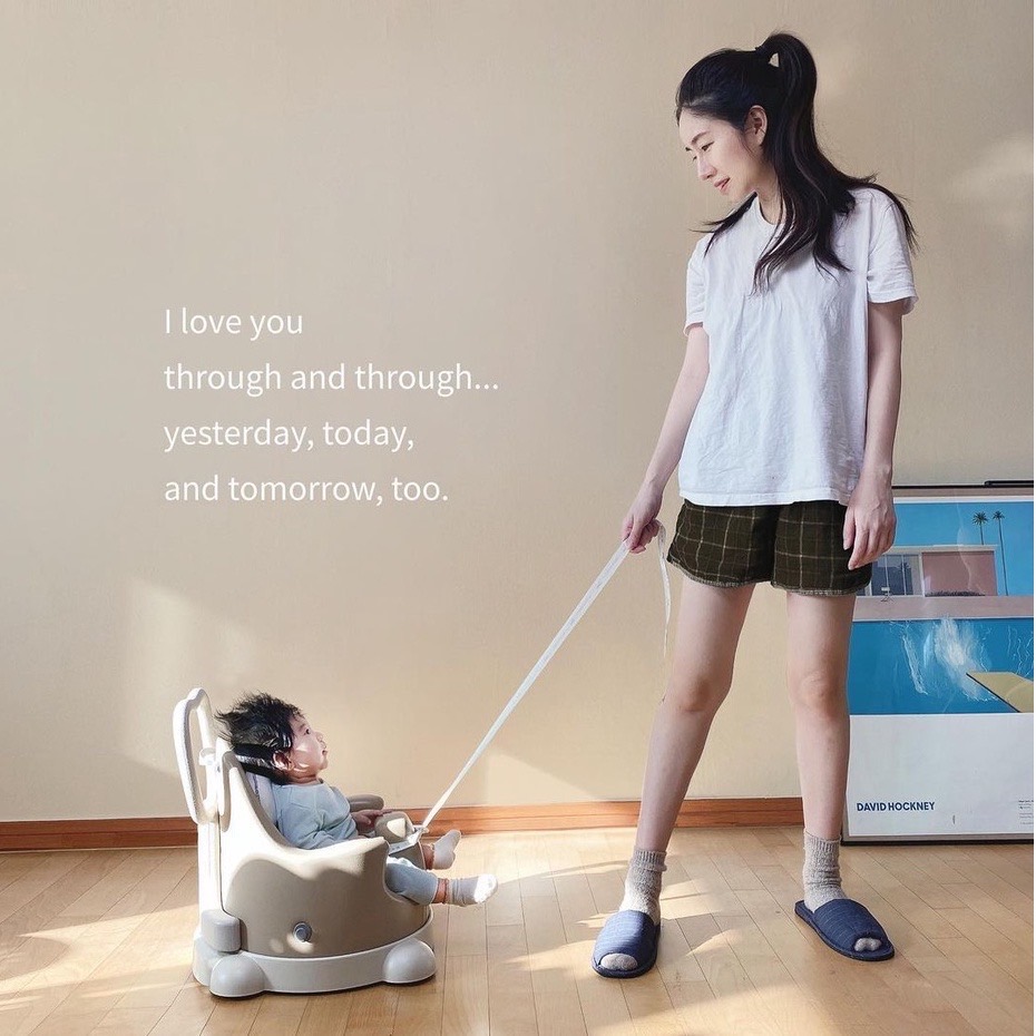 韓國製幫寶椅/帶輪嬰兒椅/學步車(小熊款):含幫寶椅/底座輪子/坐墊/防撞枕頭